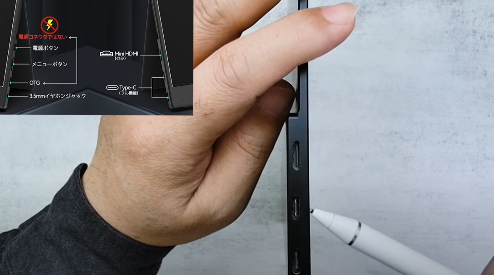 たまにモバイルモニターのコメントで、操作がやりにくと意見する方がいますが、どの機種も薄型なディスプレイにボタンを付けてる為です。